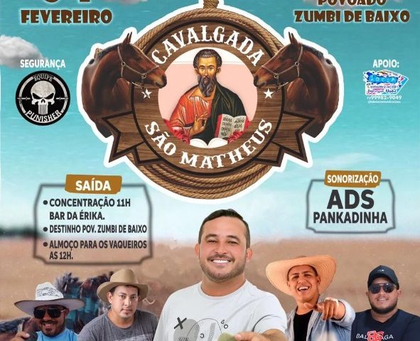 Ver mais Cavalgada de São Matheus faz a alegria do euclidense neste domingo (4)Neste domingo, dia 4 acontecerá a 6ª edição da Cavalgada São Matheus no Povoado Zumbi de Baixo