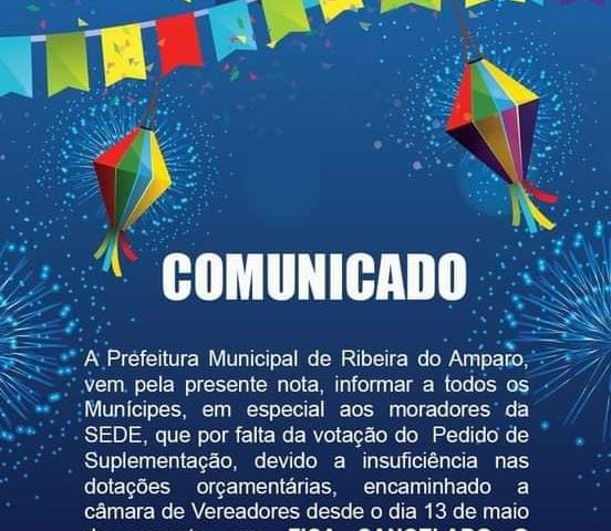A festa de São Pedro do município de Ribeira do Amparo foi cancelada pelo prefeito Germano Santana, onde o mesmo diz ter dinheiro em conta,…