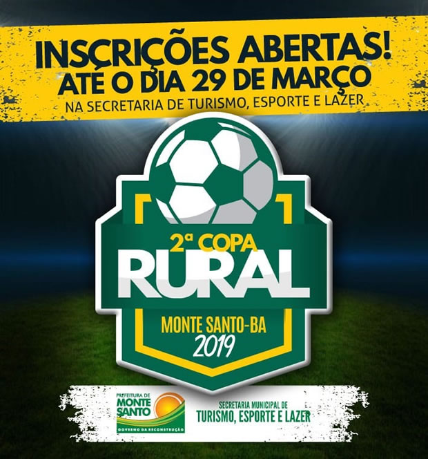 A prefeitura de Monte Santo está com inscrições abertas até o dia 29 de março para a segunda edição da Copa Rural.