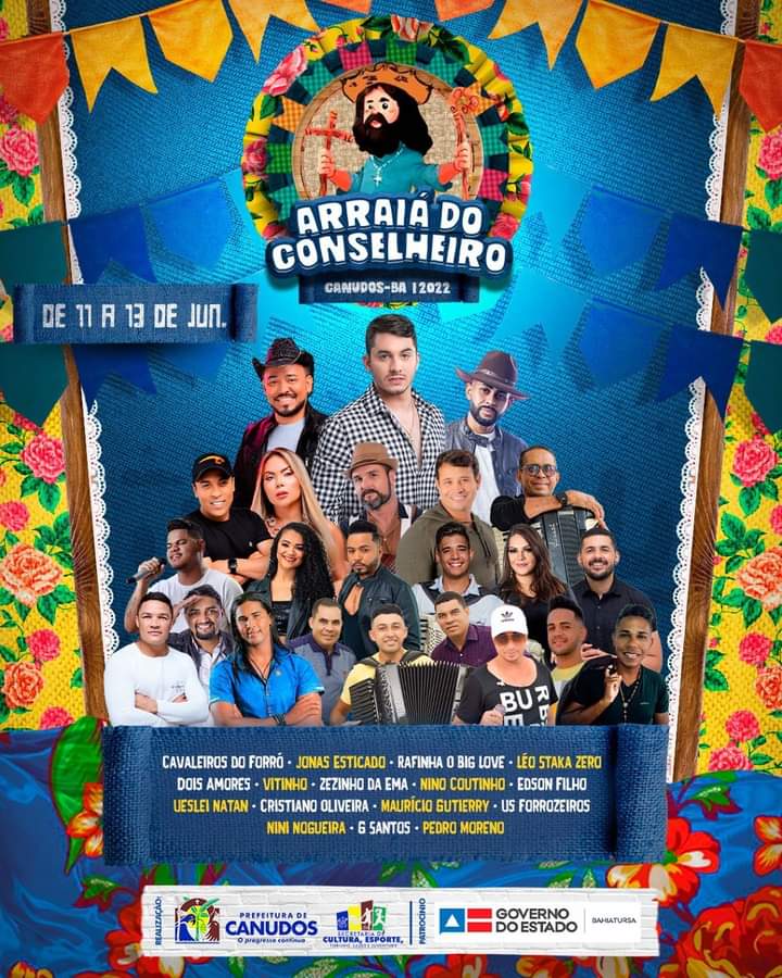 Arraiá do Conselheiro, tradicional festividade junina do município de Canudos, Bahia, já tem a grade de atrações confirmadas, conforme divulgação da Prefeitura Municipal de Canudos.