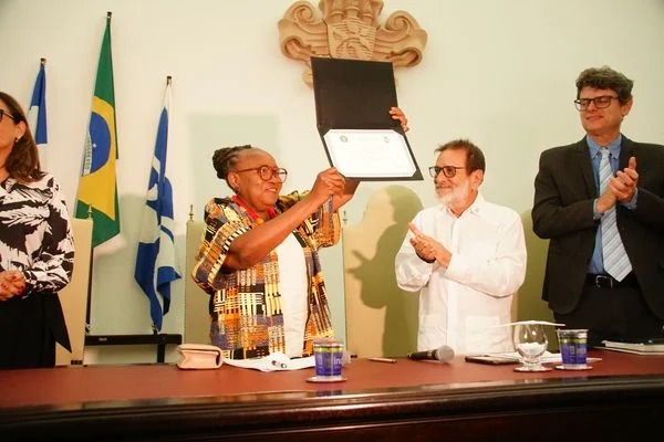 Creuza recebeu o título da Universidade Federal da Bahia (UFBA) durante uma cerimônia realizada no Salão Nobre da Reitoria da UFBA, na última sexta-feira (24). O título foi outorgado por volta das 19h30, pelo reitor da UFBA, Paulo Miguez. Aplausos tomaram conta do ambiente, somado a cânticos e suspiros de admiração. Nessa hora, o Salão Nobre já estava lotado e Creuza não conseguiu conter a emoção.