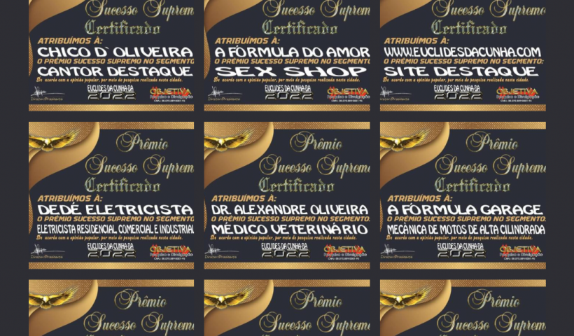 Ver mais Euclides da Cunha já se prepara para receber turistas; cidade movimentará cerca de R$ 5 milhõesPrêmio Sucesso Supremo 2022 é entregue pela Objetiva Pesquisa e Divulgação