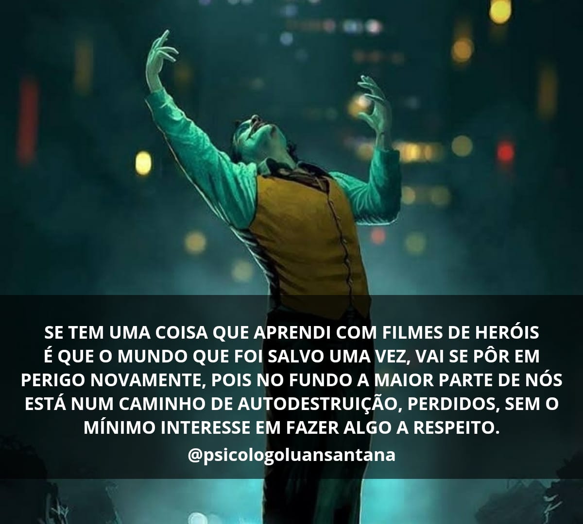 Acredito que a raiz de todos os nossos problemas e transtornos emocionais está no amor que não damos a nós mesmos. Por isso que nos filmes de heróis, os vilãos são aqueles que sucumbiram para a escuridão de suas perdas por motivos que só eles conhecem. E hoje, a maioria de nós é mais vilão do que herói, pois estamos mais preocupados em justificar nossos sofrimentos e se conformar com eles, do que fazendo algo para nos curarmos definitivamente.