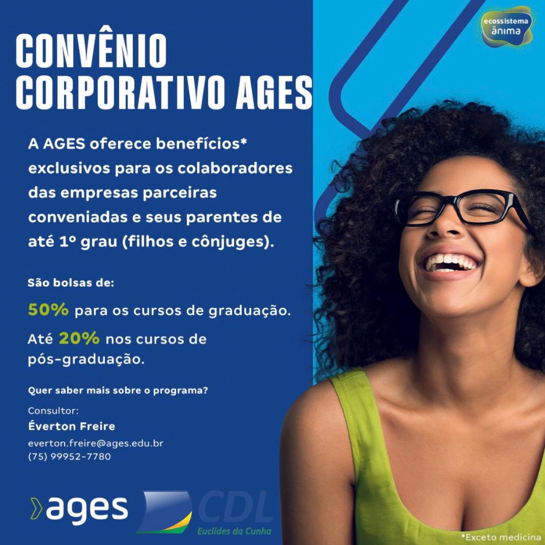 A CDL de Euclides da Cunha em convênio com a Faculdade Ages, não traz somente descontos para os seus associados, mas também uma parceria de imensurável importância para o comércio, que é o apoio administrativo e contábil para micro/pequenas empresas, que realizará consultorias (administrativas e contábeis) de forma gratuita para os graduandos em administração e contabilidade da AGES.